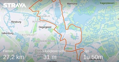 Vanuit 't Buurthuis, na een kop koffie, richting Zoeterwoude Weipoort. Over het Kerkelaantje richting Stompwijk. Hobbelend door het dorp richting Voorschoten. Langs het water weer terug naar Leiderdorp.